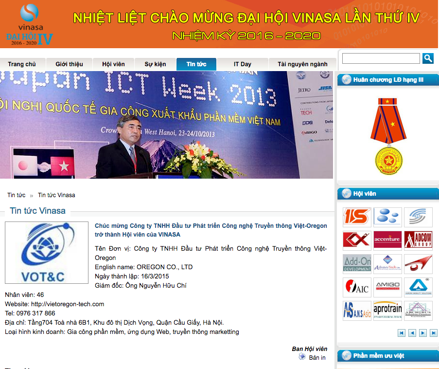 VOTC | VOTC là hội viên chính thức của Hiệp hội Phần mềm & Dịch vụ CNTT Việt Nam VINASA